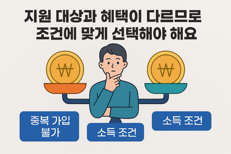 각 상품은 대상 기준이 다르기 때문에 본인의 조건에 맞는지를 먼저 따져봐야 해요. 아래 표를 참고해 빠르게 비교해 보세요.